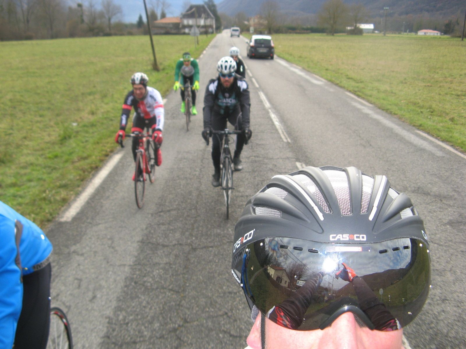 Quand je vois toute cette jeunesse je m'inquiète du rythme de la sortie , donc au début avec je me met devant avec Igor , mais le vent et fort ,je le laisse seul , mais émilien et pierrot viendront lui prêter main forte .Plus de 30 kms/h ,vent de face , ça discute ,ça plaisante ,jamais essoufflé ,il en va de même avec les frangins .